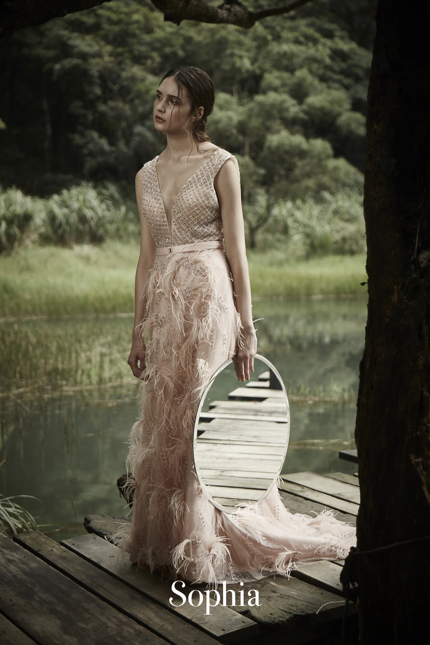 以精緻工藝營造出獨家的輕盈華麗感,為2020春夏帶來不同樣貌。禮服素材運用反射、反光性元素,如高級訂製規格專用的義大利細緻亮粉面料、星鑚軟紗,雙色金縷線車骨蕾絲,搭配具有象徵自由蛻變的高級訂製配飾:羽毛。